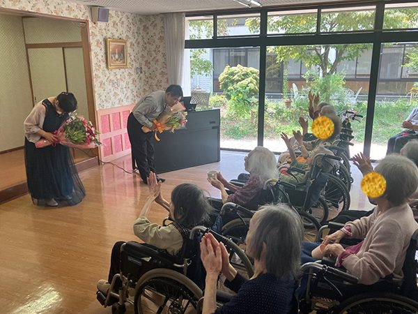 本館に来園され、ご入居者に歌とピアノのプレゼントを戴きました。