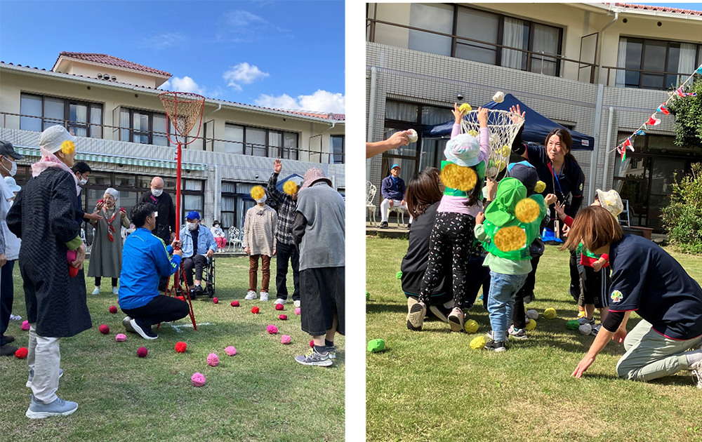 新館ご入居者とかがやき保育園園児でどちらがたくさん玉が入ったかを競いました。