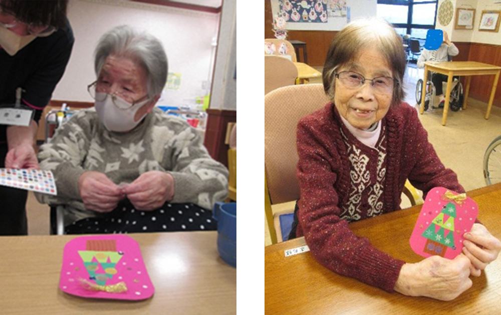 ご入居者の皆様とクリスマスカードを作り、クリスマスソングを合唱しました。