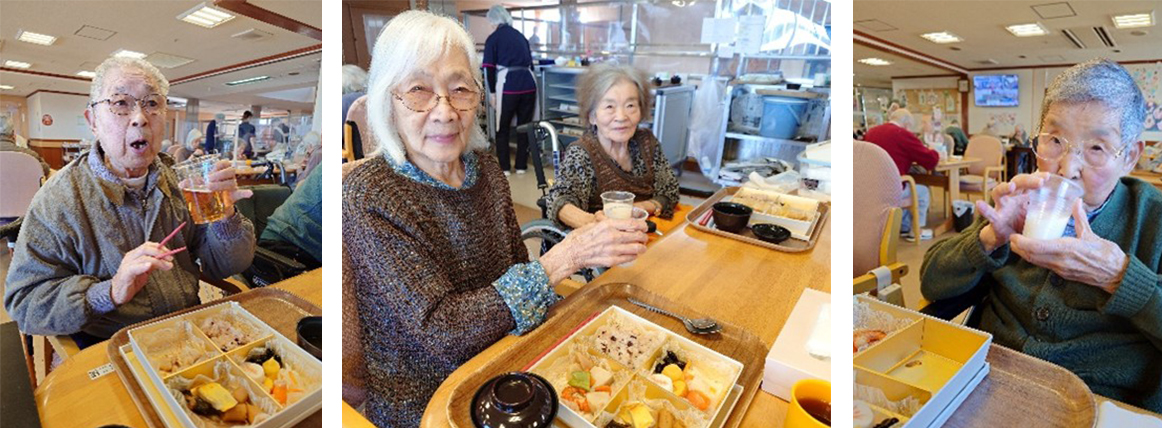 ご入居者様同士「乾杯!!!今年もよろしくね。」とあちこちから声が聞こえておりました。