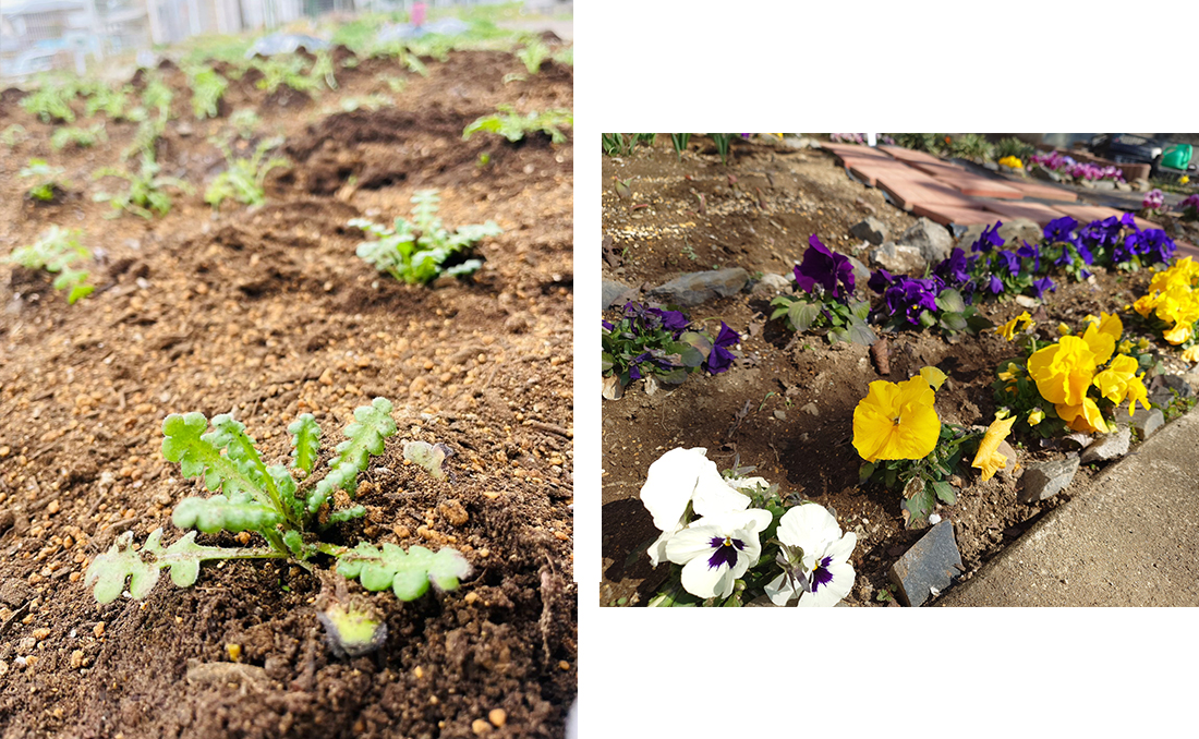 花壇の手入れや冬の間に発芽させたネモフィラも